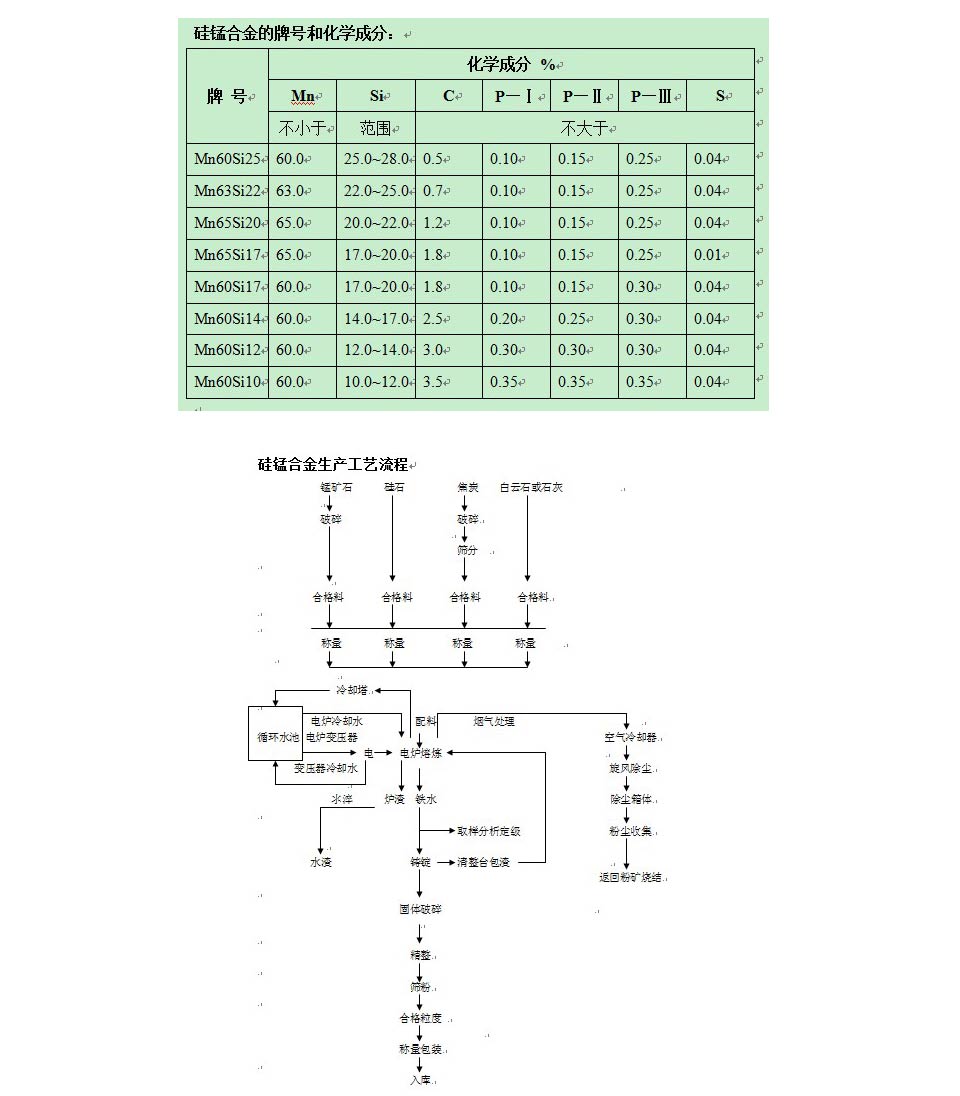 產品概述:     硅錳合金是由錳、硅、鐵及少量碳和其它元素組成的合金,是一種用途較廣、產量較大的鐵合金。硅錳合金是煉鋼常用的復合脫氧劑,又是生產中,低碳錳鐵和電硅熱法生產金屬錳的還