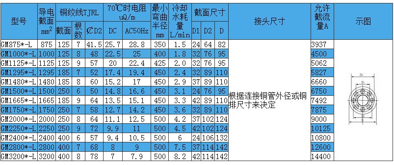礦熱爐類水冷電纜技術參數: